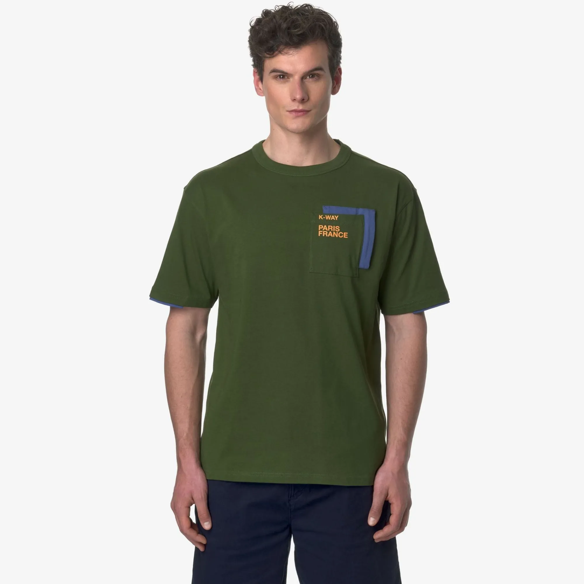 K-WAY Fantome Contrast Pockets – T-Shirtstop – T-Shirt – Man – Green Cypress-Blue Fiord-Orange Md Discount
