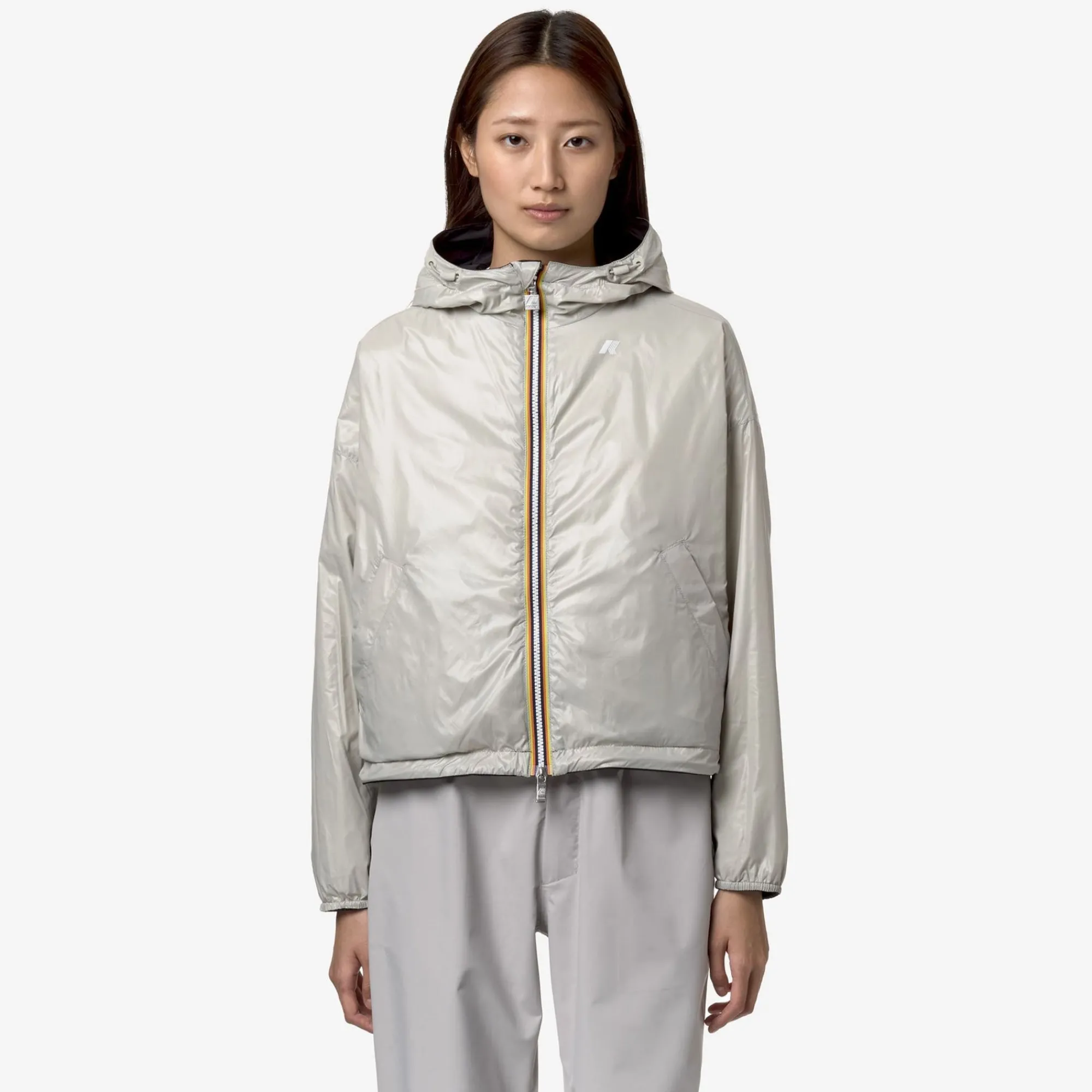 Product Descriptionlaurette Is A Women’S Jacket With A Cropped Cut And A Packable, Reversible Design, Made From Recycled Material: A Coated Nylon Side And A Contrasting-Coloured Smooth Nylon Reverse Side. This Style Is Designed With Utmost Attention To Detail: Heat-Taped Seams And Elasticatedhems Which Provide Grip And A Customizable Fit. Waterproof, Windproof And Breathable Nylon Outer Layershiny Water-Repellent Nylon Reversereversibleheat-Taped Seamsadjustable Drawstring Hood With Stoppersadjustable Drawstring Waist Hem With Stopperszip Fasteningelasticated Cuffs2 Zipped Pockets2 Snap Button Pocketsoversize Fitwhite Silicone Logo Patchfeaturesdescription:Jackets, Shortgender:Womanseason:Spring, Summercompositionexternal: 100% Nylonlining: 100% Nylon