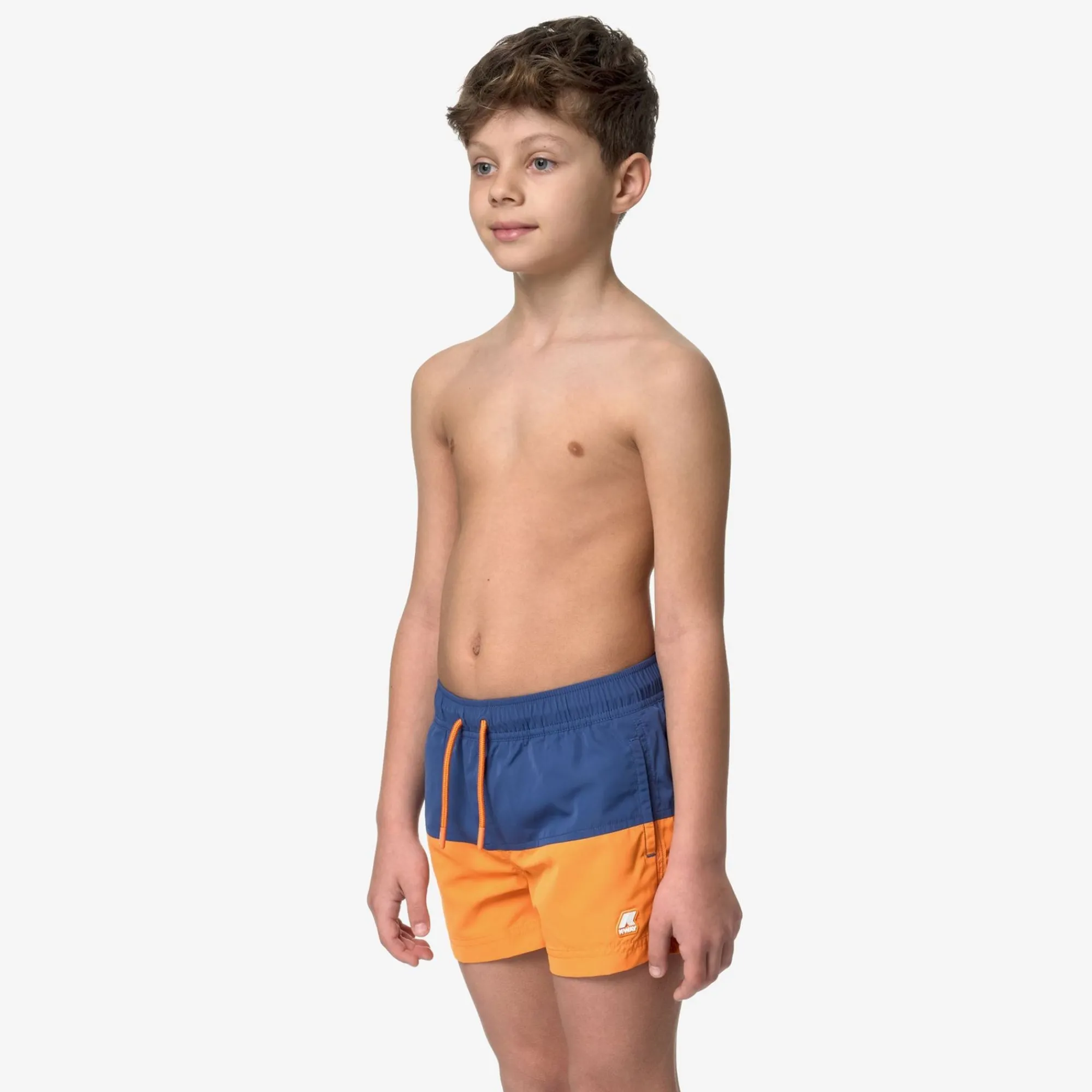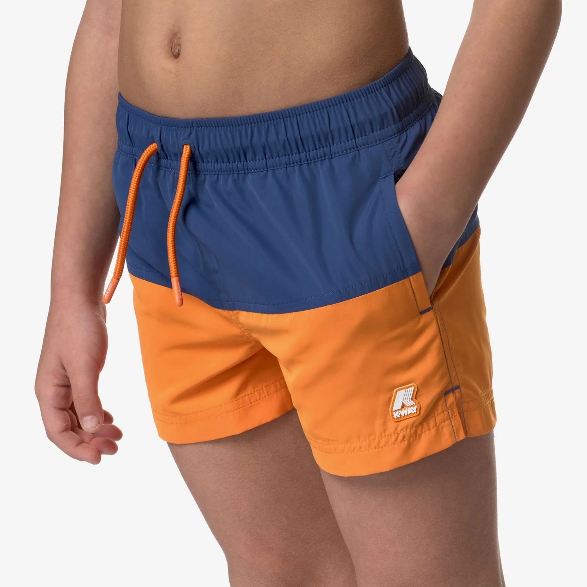 Product Descriptionleslie Is A Pair Of Boys’ Swim Shorts That Boast A Classic Boxer Fit And A Versatile, Bold Color-Block Design With Two Pockets On The Sides And One On The Back, Personalized With K-Way Colorful Tape. Crafted From Quick-Dry Nylon, These Swim Shorts Feature An Elasticated Waist, Inner Mesh Briefs And Side Vents For Optimal Freedom Of Movement.Quick-Dry Nylonmesh Liningelasticated Waistside Pocketsback Velcro Pocketinside Coin Pocketregular Fit White Silicone Logo Patchfeaturesdescription:Bathing Suits, Swimming Trunkgender:Boyseason:Spring, Summercompositionentire: 100% Polyester